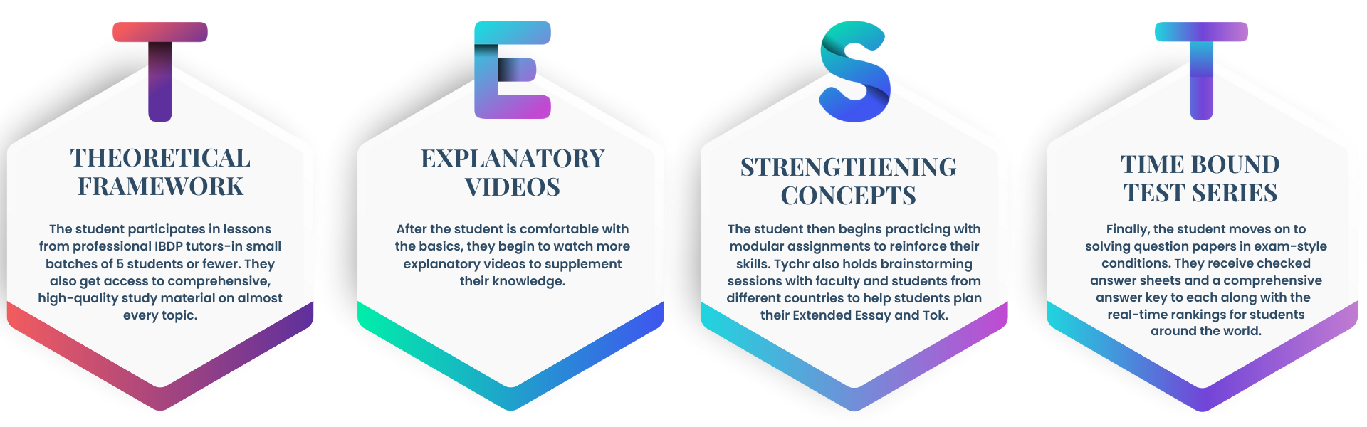 Like all our online tuitions, our IBDP course follows our proven T.E.S.T. Methodology.